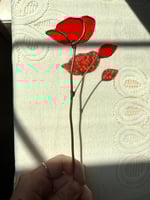 Poppies have this quiet strength to them. They show up in the rough spots, add color where everything else feels dull, and kind of pull you into that softer, dreamier place we all forget to go. That’s what kept coming to mind while I was making this piece. The crimson glass has a warm, ember-like glow to it, grounding but still a little magical, like a reminder to slow down for a second and just breathe.