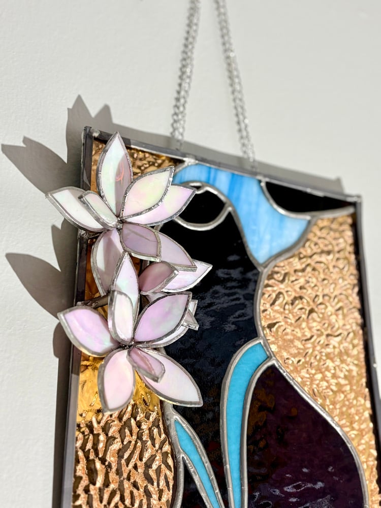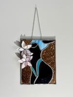 Magnolia is a study in contrasts: soft iridescent petals opening gently beside the dark, teasing curve of a woman’s breast as she stretches just beyond the frame. She’s warm, evocative, and a little intoxicating — the kind of piece that stirs something low and slow in your bloodstream.